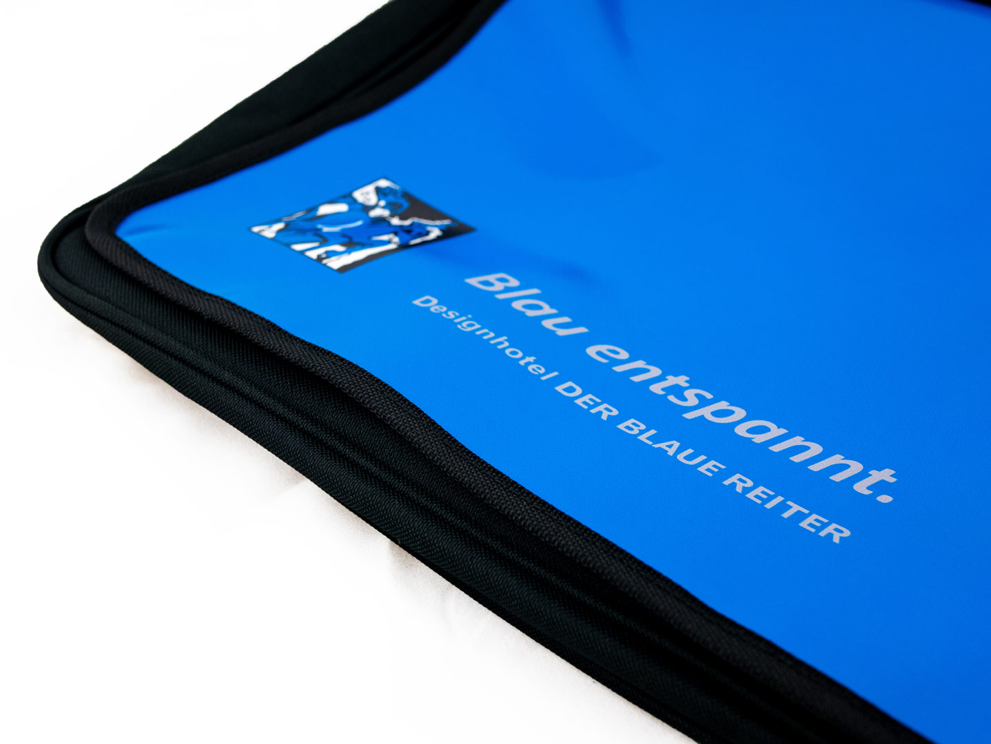 The bag with our slogan "Blue relaxed." Fits perfectly with our blue trolley and offers enough space for your office utensils and your laptop.