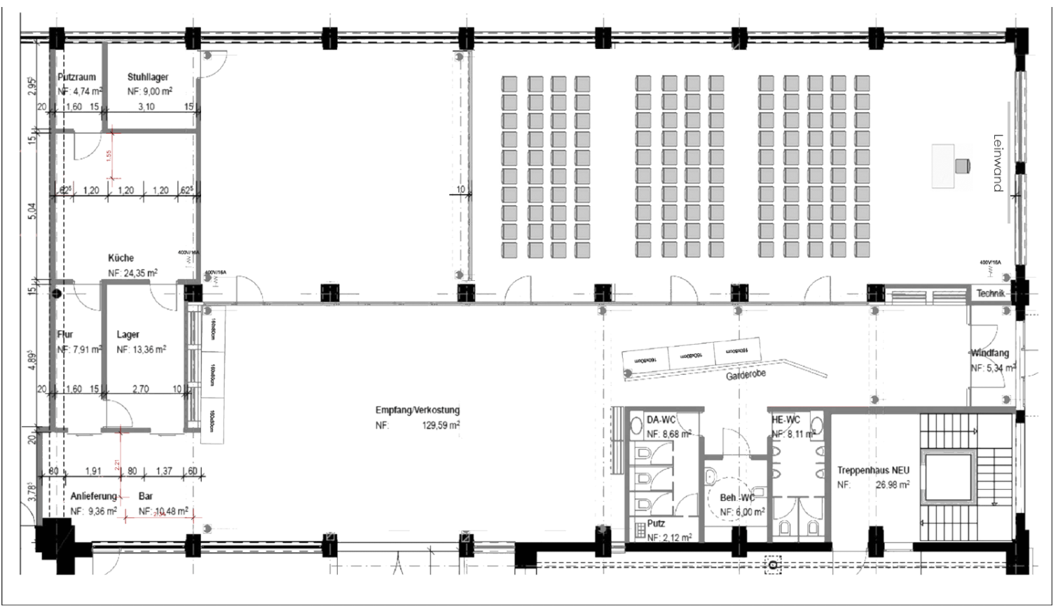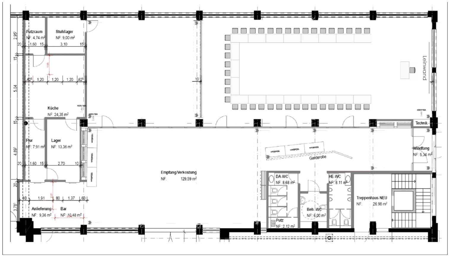 Unser Tagungs- und Eventzentrum KunstWerk befindet sich nur 120m vom Design- & Tagungshotel entfernt. Hier ist auch der 160m²-Tagungsraum zu finden. Die hellen Räume lassen sich, mit modernster Technik und einem besonderen Lichtkonzept, flexibel auf Ihre Veranstaltung abstimmen. Das Foyer mit schöner Terrasse ist 160m² groß und kann für Tagungspausen genutzt werden. L x B x H = 20 x 8 x 3,15 m.